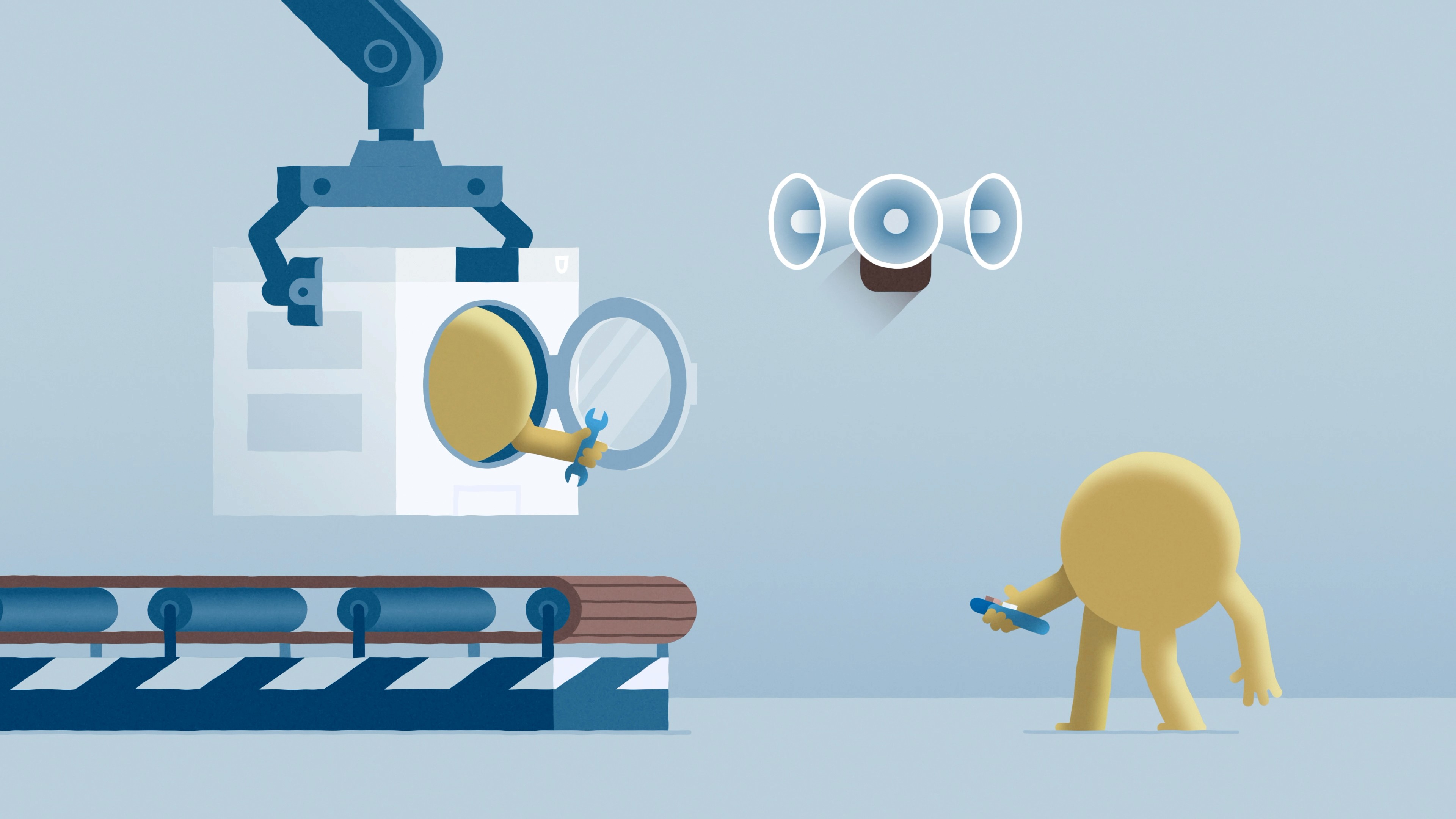 Schon bei den ersten Animationstests zeigte sich, dass die Kugeln die richtige Wahl waren: Der ganze Fokus liegt auf der Bewegung der Figuren. Und das Beste? Ihre «gelassenen» Gesichter passen perfekt – denn keine Panik und Ruhe bewahren sind bei einer Evakuierung essenziell.
