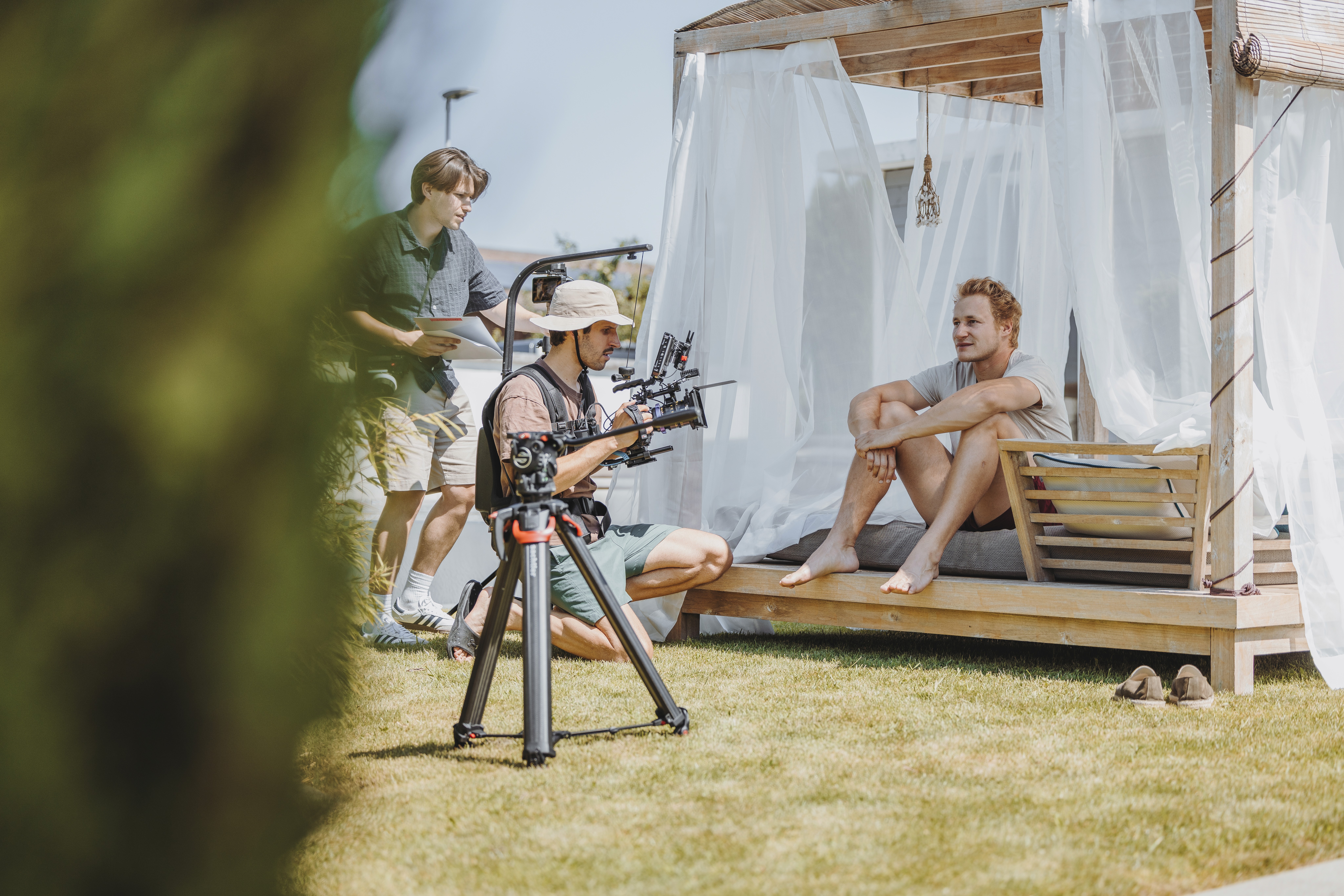 Zwei Drehtage. Der erste mit Marco war bis ins letzte Detail geplant – alle Szenen wurden vorab schon einmal testgefilmt, damit wir das Maximum aus der knappen Zeit mit ihm rausholen konnten. Als er dann am Set stand, war kein Platz für Überraschungen. Der zweite Tag mit Scott hatte etwas mehr Luft, dafür hatten wir uns viel vorgenommen: viele verschiedene Locations, alles an einem Tag. Hat uns ganz schön auf Trab gehalten. Aber es hat funktioniert – und das Wetter hat auch wunderbar mitgespielt.