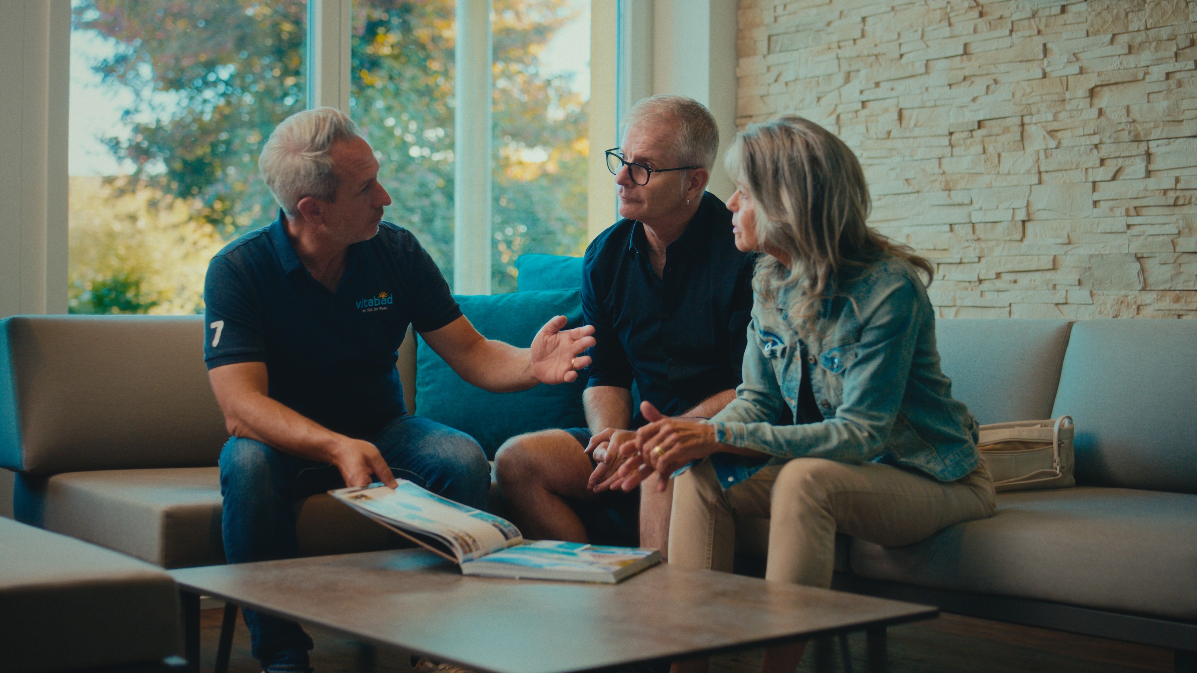 Scott ist kein gebuchter Moderator und kein Schauspieler – er ist Projektleiter bei Vita Bad und arbeitet da ganz regulär. Bei einer so tragenden Rolle mit jemandem ohne Kameraerfahrung zu arbeiten, ist normalerweise ein Risiko. Aber vom ersten Gespräch an war klar: Das wird funktionieren. Scott hat am Drehtag von A bis Z abheliefert und wir sind überzeugt, dass niemand diese Rolle authentischer hätte spielen können.