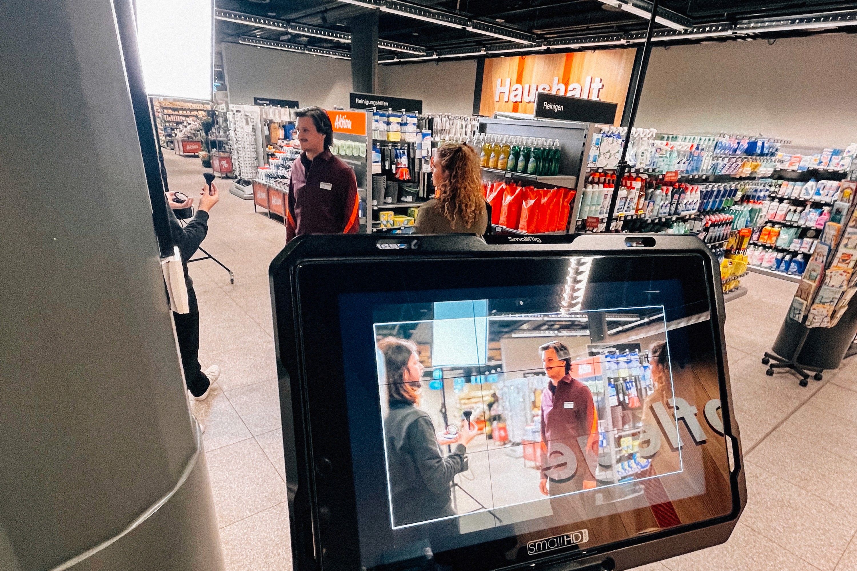 Zwei Tage Dreh in der Filiale Ruopigen mit einer Schauspielerin. Vorab haben wir alle Shots mit uns selber probegfilmt, um im Laden möglichst effizient zu sein. Gedreht wurde dann nur vor dem Mittags- und Feierabend-Ansturm, damit wir den laufenden Verkaufsalltag nicht behindern und trotzdem authentisch in der echten Filiale drehen konnten.